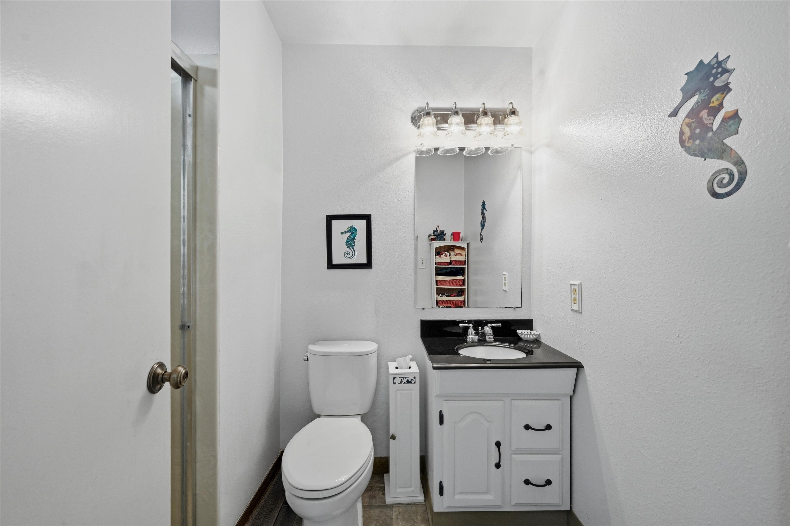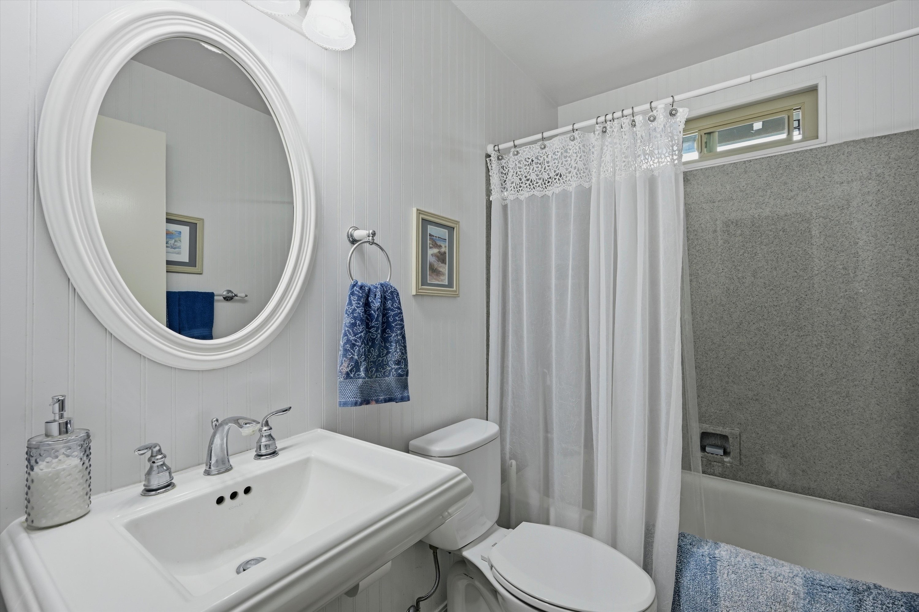 Efficient primary bath with shower or you can let your cares float away in the hall bath soaking tub.